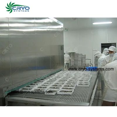 IQF is an abbreviation for “individually quick frozen”, a process that freezes food rapidly so there is minimal damage to the cellular structure of the food. A tunnel freezer is a class of processing freezer systems where the product usually travels horizontally through a long enclosed space (freezing tunnel) and cold air is circulated upward through the product.