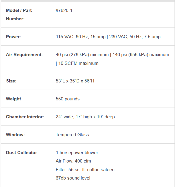 - Holds up to 20 pounds of abrasive