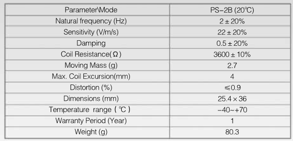 PS-2B geophone is kind of low frequency geophone developed following request of seismic exploration and engineering which is mainly to receive deep level, low frequency and weak signal. It can be used as single point and also 3-component.