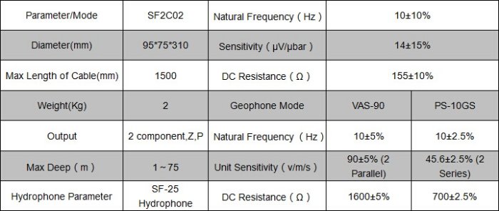 SF-2C02 Dual Sensor is mainly used for oil exploration in marine and transition zone. It can make up the receiving P wave in marine The dual Sensor contains two super geophones and one hydrophone. The two super geophones can rotate 360 degree along the axis. The liquid damping can reduce the noise of the rotating parts and the geophones have good coupling. Meanwhile, it can restrain the interference by the external background noise. And the hydrophone has high sensitivity. The internal of Dual Sensor is sealed by PU with good waterproof performance and high reliability. The working depth is up to 100m.