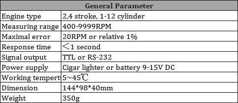 • Directly connected to cigar lighter or battery to measure its RPM without any sensor.