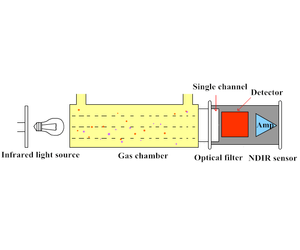 The principle of non-dispersive infrared gas sensing technology is that the gas absorption of characteristic infrared wavelengths conforms to Lambert-Beer's law. The basic principle is that an infrared light source emits an infrared beam through the sampling gas chamber, and each gas component in the sample gas absorbs a specific frequency infrared rays. By the detector to receive and measure the infrared absorption of the corresponding frequency, combined with the algorithm analysis set in the embedded software, the concentration of the gas component can be measured. The reason why this technique is non-dispersive is that the wavelength passing through the sampling gas cell is not pre-filtered.