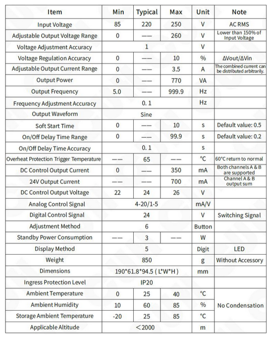 - Dual-channel working mode can choose frequency tracking, voltage tracking or frequency-voltage dual tracking.