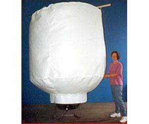 The optimized filter bag shown here has four loops on top to suspend it from above and was designed to fit over a 1.5 hp collector.