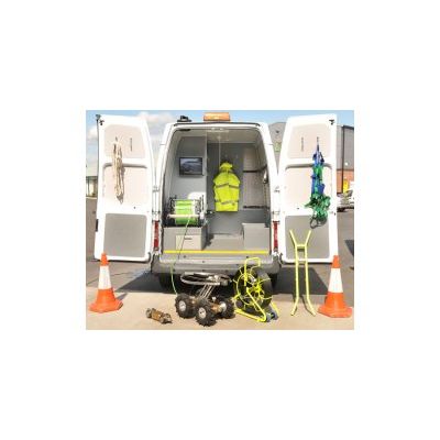 Complete CCTV System designed and built in- Ford Transit LWB 140 T350 Cab Air Conditioning Electric windows / mirrors 6 speed gearbox Generator Yamaha EF3000 iSE Inverter Vented out through floor General Vehicle is ply-lined prior to Speed-Lining sides to just under worktop height. Floor sections also finished in Speed-Lining material. Upper office section wall to be carpeted, the rear section walls finished in grey wipe-clean board. All wood surfaces below half height in rear area finished in Speed-line material. Anti slip tread fitted to side load door access. Electrics Split charge system which includes an auxiliary battery, voltage sensitive relay and battery protection. 12v Hand-wash unit 12v Hot water (drinks) dispenser Additional 12v lighting to office and operational area 240v inlet and consumer board protection for approx 5 x 13amp sockets 12v diesel night heater with timer Intercom system Magnetic light with DIN socket Fitted out office and rear work area