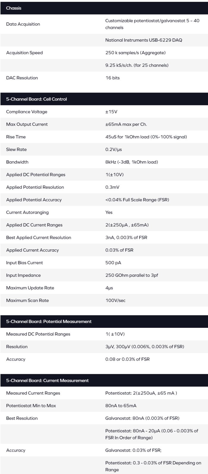 - Customizable potentiostat/galvanostat 5 – 40 channels.