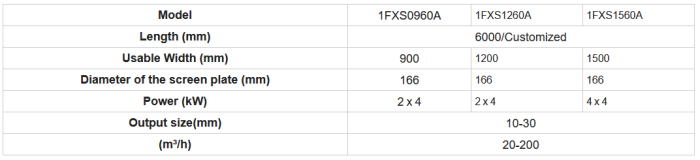 When in operation,the material moves in a line towards the discharging point.The material smaller than the screen hole is separated out then conveyed to the collecting point.The material larger than the screen hole will be conveyed to the final product storage area.