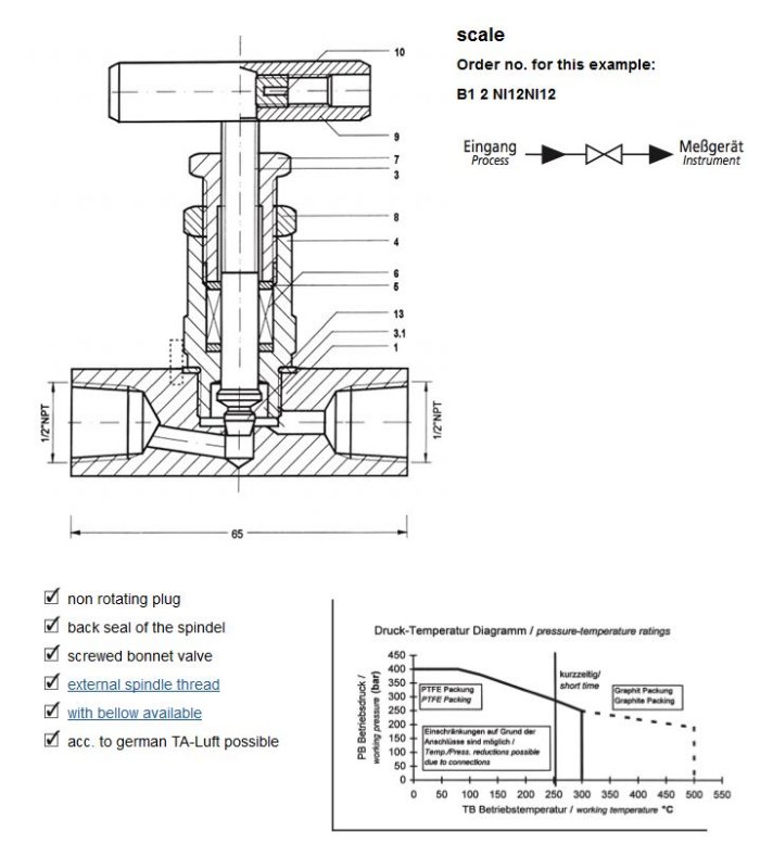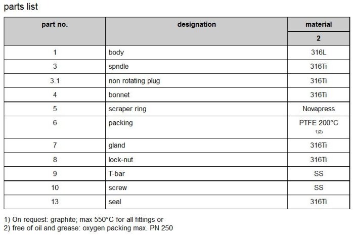 • T max 500°C with graphite packing