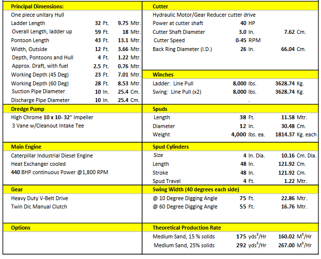Powerful, fuel efficient, offering the lowest overall operating costs, High Speed Low Torque Cutter Drive System, Fresh Water Cooling System, Single Module Unitary Hull for easy transportability and assembly, Broad range of optional equipment to customize to your work, 24 V Electric System for Convenience Power.