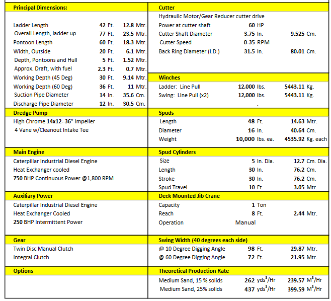 Powerful, fuel efficient, offering the lowest overall operating costs, High Speed Low Torque Cutter Drive System, Fresh Water Cooling System, Three major Hull sections for easy transportability and assembly, Broad range of optional equipment to customize to your work, Dedicated diesel generator for AC power.