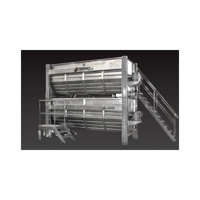 Malaxer GR 12000 is Mr. Oil’s cutting edge malaxing system, designed for continuous large scale production standard suited to malaxation of olive paste and husk. It is made up by two overlapped malaxing tanks adding up to 12000 litres. It features an overfall orifice. It is fully made with stainless steel.