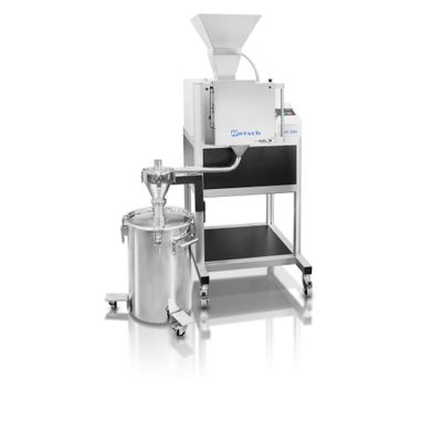 The unit can be equipped with an optional cyclone and a large 30 l receptacle (both stainless steel 316L) for collecting large sample amounts. Smooth surfaces lead to almost 100% sample recovery and easy cleaning.