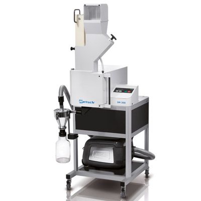 When operated with the optional cyclone-suction-combination, the SM 300 is also suitable for grinding light sample materials or smaller quantities. In combination with the wide choice of bottom sieves, hoppers and collecting vessels, the mill can be easily adapted to varying application requirements.