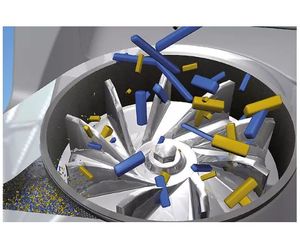In the cyclone mill TWISTER size reduction is effected by impact and friction between the rotor and the friction surface of the fixed grinding ring. The feed material passes through the hopper (with splash-back protection) onto the rotor which is rotating with high speed and is thus submitted to preliminary size reduction. The sample is then thrown outwards by centrifugal acceleration and is pulverized between rotor and grinding ring. The 2-step grinding ensures particularly gentle but fast processing. The feed material only remains in the grinding chamber for a very short time. The integrated cyclone provides cooling of the sample and the grinding tools. This guarantees preservation of the sample properties to be determined. The ground material is separated in the cyclone and collected in a sample bottle.