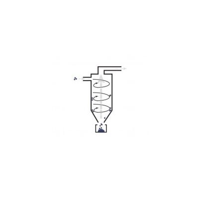 The process requires high speed rotational air, typically derived from the incinerators combustion air system, however draft induced fans can be used to drag the gasses through the cyclone. Rotation of the gas is established directing the off-gas into a cylindrical container, subsequently the air flow forms a helix. As the air flow travels down the cylinder the heavier dust particles are forced to the edges of the helix because of the rotational forces. Heavier dust particles strike the cylinder walls they have too much inertia and fall to the bottom of the cylinder from where they are collected and removed.
