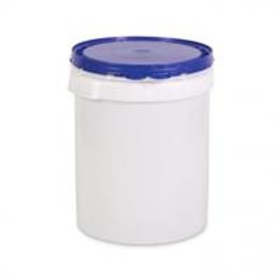 Shape: Round, straight-wall (for plate pump). Dimensions (mm, Diam. x H): 327 x 377. Volume (L) under lid: 22.6. Closure type: Press on. Raw material(s): HDPE / PP. Tamper Evidence: Yes, integral tear-off band. Handles: Two integral side handles, optional carry handle. UN code: 1H2/Y30/S.