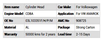 03L103351F/H/P/M Cylinder Head For VW AMAROK 2.0TDI.
