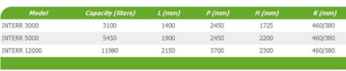 Horizontal cylindrical tanks exclusively for use by underground, provided with transversal and longitudinal ribs, realized for increase the resistance to the stresses generated by surrounding ground and threaded manhole. They are equipped with flat surfaces for placing any attacks. Also can be connected in the battery to increase the total storage capacity.