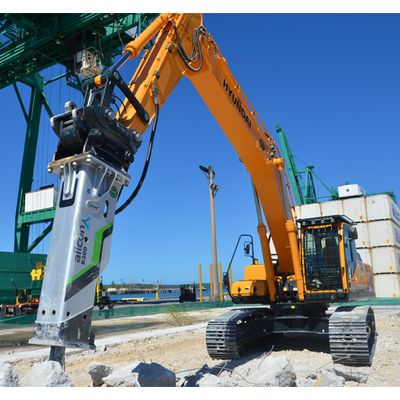 Alicon Series is a proven winner in the premium breaker market. Its optimal weight-to-size ration provides the highest impact power in its class. Its durable components complement its state-of-the-art technology. Rounded Bracket: Minimized welding provide durability against external force. Improved durability and maximum productivity enabled by Anti-blank Firing(ABF) and Total Power Control(TPC) System on all model above B50. Increased diameter of Throughtbolts and Chisel Pin for improved durability. Improved In/Out Ports by using the latest adaptor. Prevents potentially dangerous leak and breakage.