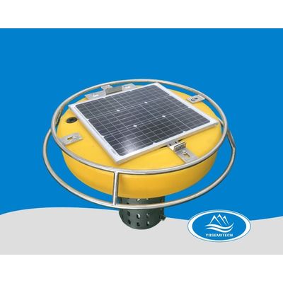 Yosemitech Data buoy consists of a cross-linked ethylene vinyl acetate foam hull with tough coatings. A 45W solar panel is mounted on the top of the buoy to charge the battery pack inside the buoy which provides continuous power to data logger, communication module, and sensors. Stainless steel ring provides protection and lifting rigs for quick and easy deployment. The buoy can be moored to the river or lake bottom via anchor chains.