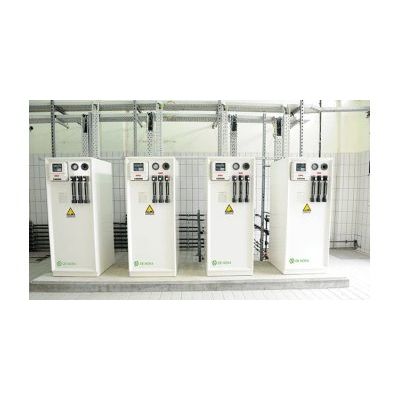 De Nora Water Technologies offers chlorine dioxide generators that ensure efficient gas production, precise solution feeding, low maintenance and dependable operation for the life of the equipment. Models consistently maintain a product yield greater than 95% and are available with either manual or automatic control, in addition to system shut-down and alarm options.