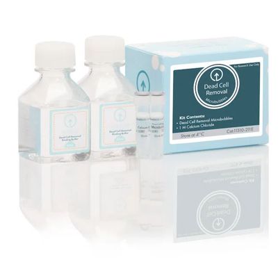 The Dead Cell Removal Microbubble Kit is designed to deplete apoptotic cells from a variety of biological samples. Unwanted dead and dying cells are captured with Annexin V conjugated BACS™ microbubbles. Captured dead cells are gently removed while enriched cells are left healthy, untouched, and ready for a wide variety of applications such as single-cell techniques, flow sorting, and cell culturing.