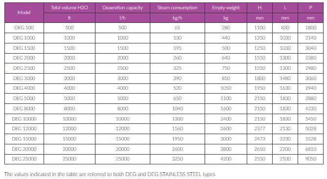 The DEG deaerators are devices at atmospheric pressure designed for the thermophysical degassing of the steam boiler feed water. The degassing process is performed by means of a controlled steam injection inside the storage tank in order to increase the internal water temperature. This appliance is part of the condition provided by the Art. 3 Par. 3 of the PED Directive 2014/68 / EU.