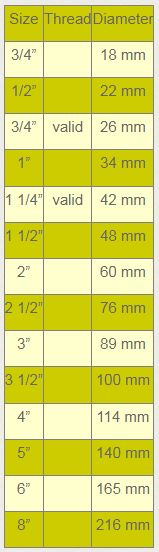 - Basically the size we have are 1/2”, 3/4”, 1”, 1 1/4”, 1 1/2”, 2”, 2 1/2”, 3”, 3 1/2”, 4” from small to big.