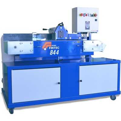 The 844 model is made up of a fixed chamfering head equipped with two crossed free belts for chamfering from 0.1 to 1 mm on any type of material with thicknesses from 0.2 to 30 mm. The adjustment to the thickness of the pieces takes place via a practical handwheel.
