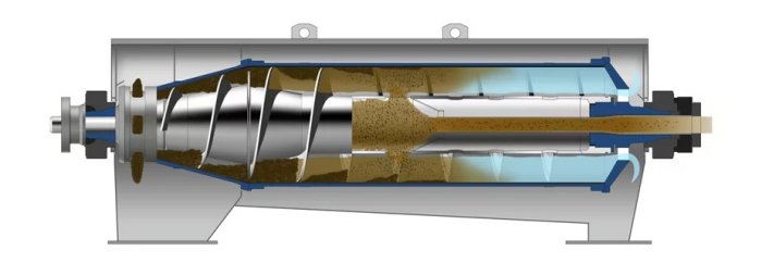 The Flottweg HTS decanter® was specially designed for sludge dewatering.The energy efficient and high-performance Flottweg Simp Drive®, along with the continuously optimized geometry of this decanter centrifuge, ensure dry solids values that are several percentage points higher than those reached with other machines.If the DS value can be increased from 23% to 25%, this means that the sludge volume is reduced by about 80% for sewage treatment plants.This also reduces the costs for transportation and disposal by around 8%.In addition to the highest possible dry solids content and highest dewatering performance, the sludge centrifuge also scores in terms of both electricity and polymer consumption.