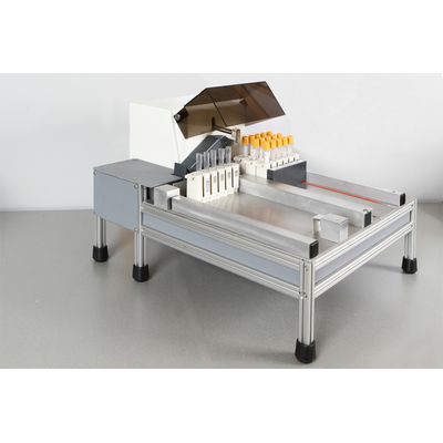 Our DeCap Pro is a compact bench-top device for automated decapping of sample tubes. Tubes in an analyzer rack are put in the inlet channel; tubes stay in the rack during decapping. The inlet channel holds up to 15 racks that are automatically processed. Racks with tubes that have been decapped are pushed into the outlet channel. Removed caps are guided to an outlet for collection of biohazard disposal with a detachable chute.