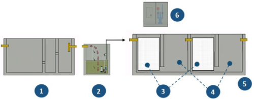 The BioKube BioReactor is most commonly used for treating wastewater from smaller villages and factories and retro fit with daily wastewater outlet of more than 100 m³. The system is designed for placement in in-situ casted concrete tanks.