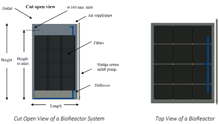 A complete system can consist of multiple BioReactor Units modular installed in parallel and 1-4 units in series. For more information see the installation manual.