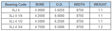 Type: Inch Deep groove ball bearings. Model: XLJ4. Dimension/mm: 101.6X142.875X22.225mm. Mass/kgs: 1.1 kgs. Rows & Structure: Inch/lmperial.XLJ. Cage: Brass.