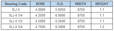 Type: Inch Deep groove ball bearings. Model: XLJ4 3/4, XU4.3-4. Dimension/mm: 120.65X165.1X22.225mm. Mass/kgs: 1.2 kgs. Rows & Structure: lnch/lmperial,XLJ. Cage: Brass.