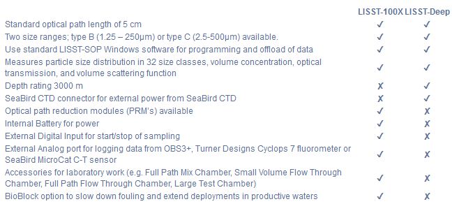 • Measures particle size, concentration, beam attenuation, VSF, depth, temperature