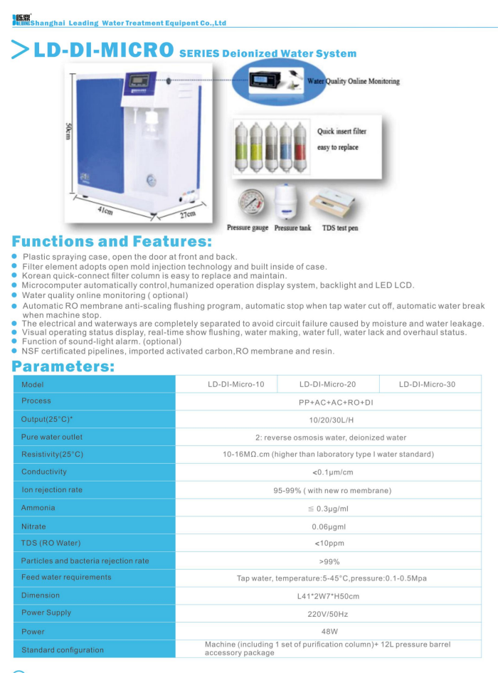 Leading - Model LD-DI-MICRO Series -Deionized Water Machine