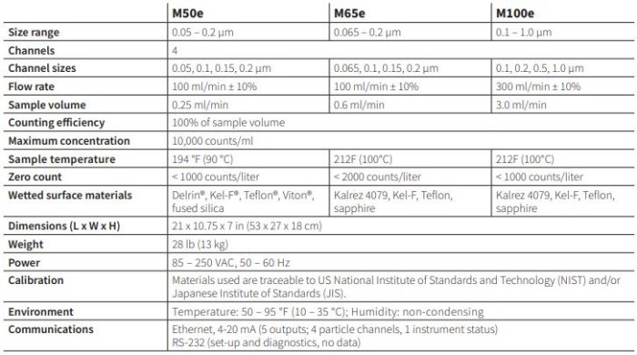 Particle Measuring Systems’ HSLIS-M50e Deionized Water Particle Counter provides continuous, real-time monitoring of contamination. The instrument makes it easy to understand the characteristics of your working fluid. The combination of high sensitivity and low cost makes it ideal when large numbers of sensors and/or long-term trending are required. Integration of the HSLIS Liquid Particle Counter into Particle Measuring Systems’ Facility Net Software provides an economical way to monitor multiple flow systems and provide dedicated local display and control capabilities. Sensitivity range: 0.05 - 0.2 µm.