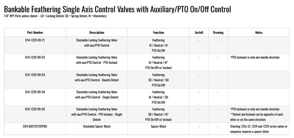DEL - Model 1229 Series -Bankable Feathering Single Axis Control Valves with Auxiliary/PTO On/Off Control