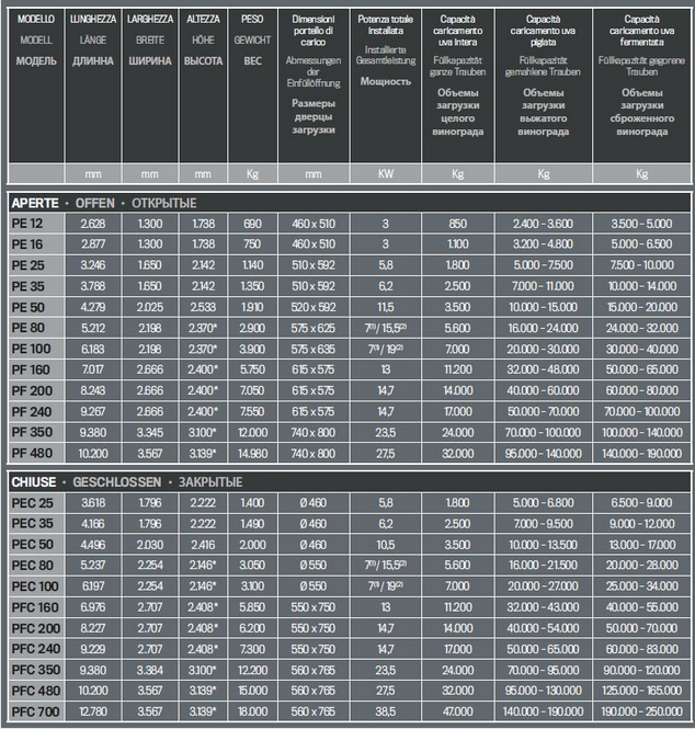 Della Toffola presses with closed tanks are available in various versions and capacities, from 12 up to 700 hl.