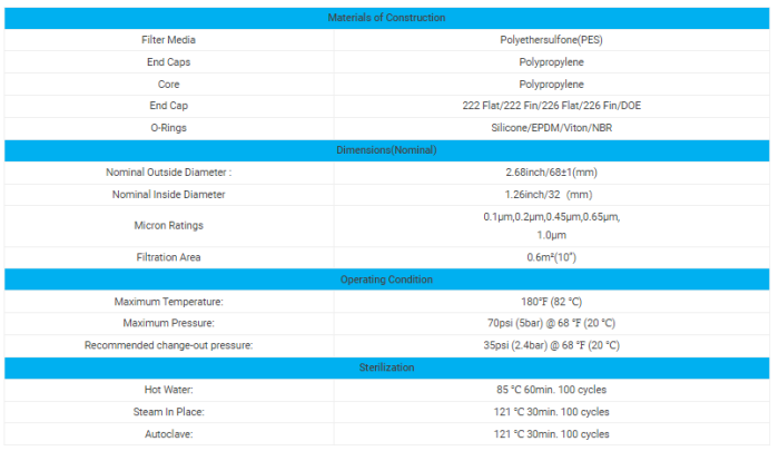 Poly Pleat BR-PES filter cartridge is designed for liquid filtration process where bacteria needs to be removed, it is constructed with 100% FDA compliant PES membrane and PP hardware, easy wetting PES membrane reduces dynamic flush time, thermal welding process makes sure no adhesive is used, Poly Pleat PES filter cartridge is bioburden reduction grade, it can be used as pre-filter in wine, beer, soft drinks, pure water, and Biopharmaceutical applications.