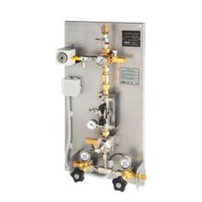 The emergency reserve supply unit C-LH-HTM/S complies to HTM 2022, HTM02-01, ISO 7396-1 and ISO 10524-2 standards. The emergency reserve manifold is designed to supply the pipeline in case of a primary supply failure. The manifold is designed according to the primary supply’s specific requirements as indicated in HTM02-01 standard. It is provided with possibility of connection to central alarm system, placed on primary supply’s manifold. The emergency reserve manifold is mounted on a stainless steel panel. The system is supplied fully assembled and tested.