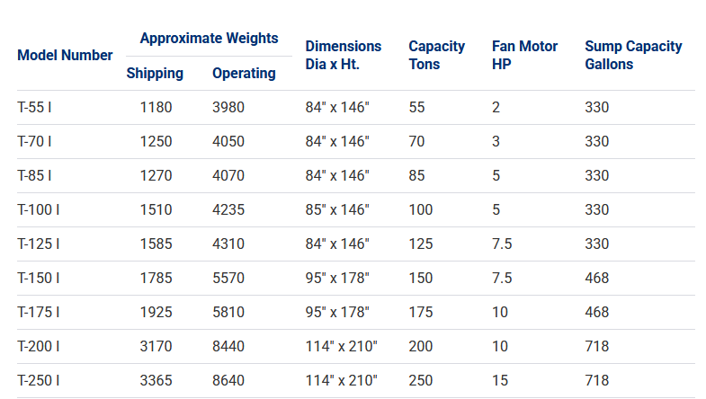 The tower`s simple design reduces maintenance costs even further. We send your cooling tower from the factory fully assembled. This allows ease of use and more reliable service from day one. You can order your PARAGON® Induced Draft Tower in a wide range of cooling tower tonnage from 55 to 250 cooling tower tons. Choose the size that is perfect for your application!