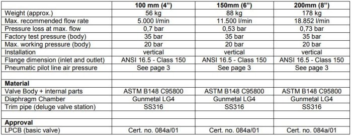 The GW MKIII Deluge valve in nickel aluminium bronze (body) is manufactured using only corrosion resistant components, which makes it highly durable and applicable for service in harsh environments – e.g. oil & gas, petro chemical process industry, marine and off shore.
