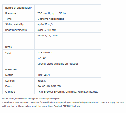 Depac - Model Type 140 -Balanced Mechanical Seals