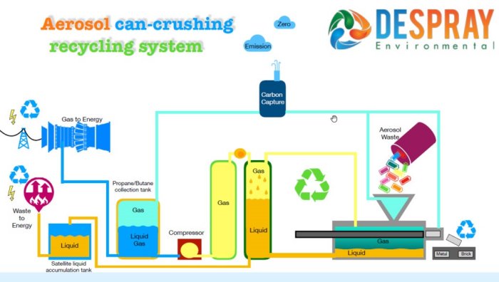 - The cans go into a hopper with an airtight, inert chamber. The DeSpray can be loaded by one person working alone; the only pre-sorting necessary is removal of large metal and unwanted foreign objects.