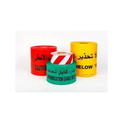 We manufacture printed caution tapes for magnetic detection and identification of underground utility service lines. The width of tape used is determined by the size and depth of the underground utility line.
