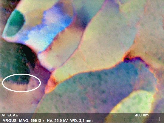 OPTIMUS™ is equipped with theARGUS™ imaging system. Dark field and bright field imaging in this configuration is also benefitted by the excellent geometric conditions, resulting in brilliant images containing details down to the nanometer scale. ARGUS™ can for instance be used to display individual dislocations and networks of dislocation walls in deformed materials. It is even possible to produce dark field images showing detail like 3D information on boundary plane inclination.