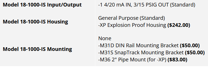 Devar - Model 18-1000-IS -Electro-Pneumatic Transducer with Wide Supply Pressure Range (18-1000 Transducer)
