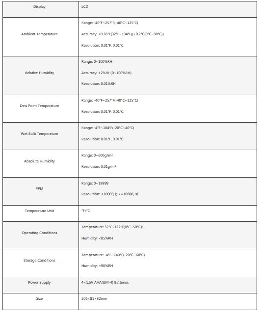 It is a high accuracy of professional digital dew point meter. 0.01 resolution. The meter can quickly respond to temperature and humidity measurements in the industrial range. It is also capable of measuring temperature and humidity in a variety of complex environments. Used in laboratories, precision manufacturing, modern agriculture, meteorological measurement, chemical and pharmaceutical fields.